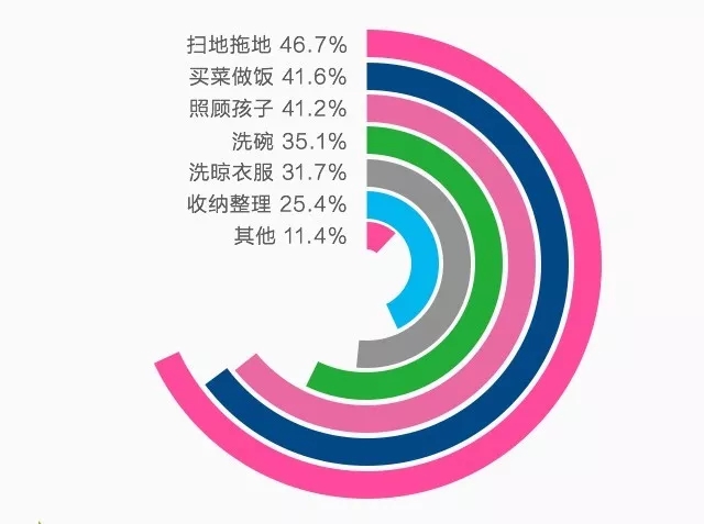 你扫地我晾衣的这种共同劳动的思想在绝大部分家庭中仍未得到渗透,太太们在家务劳动中依然承担更多。绝大部分太太们愿意使用智能家电减轻负担。其中,扫地机器人和智能晾衣机最受欢迎。