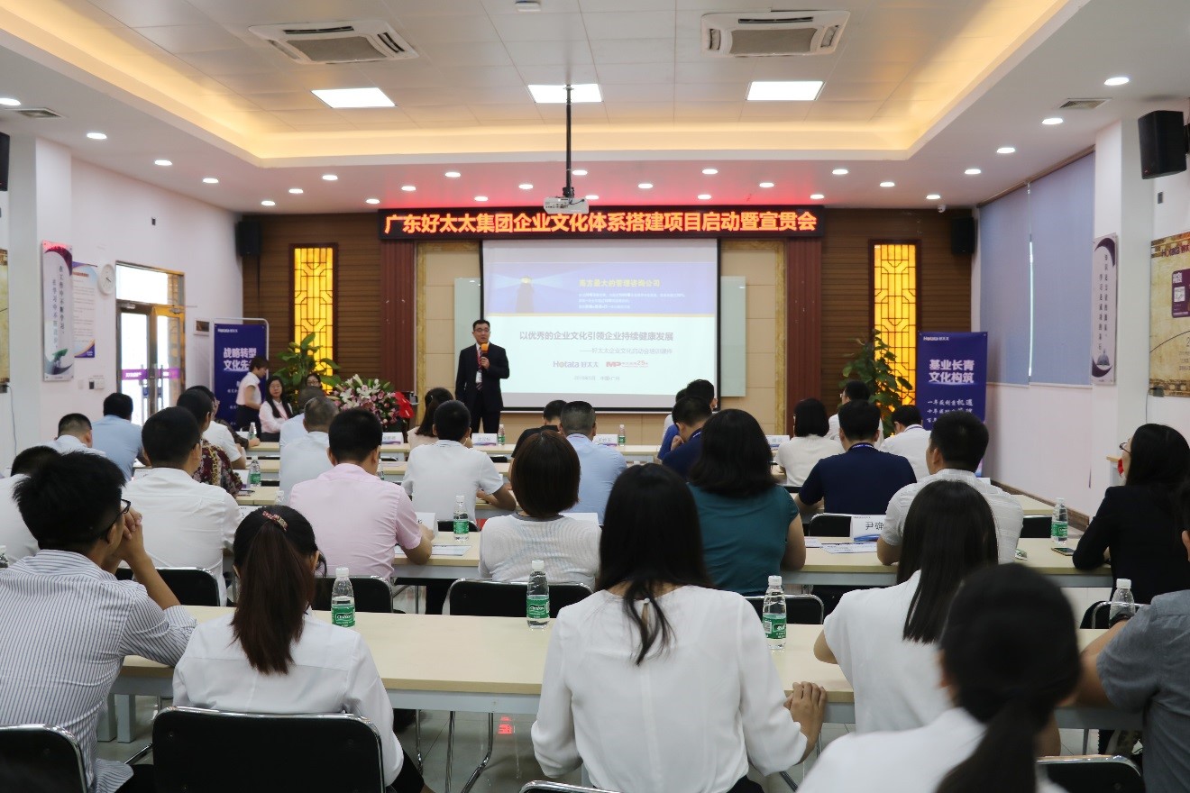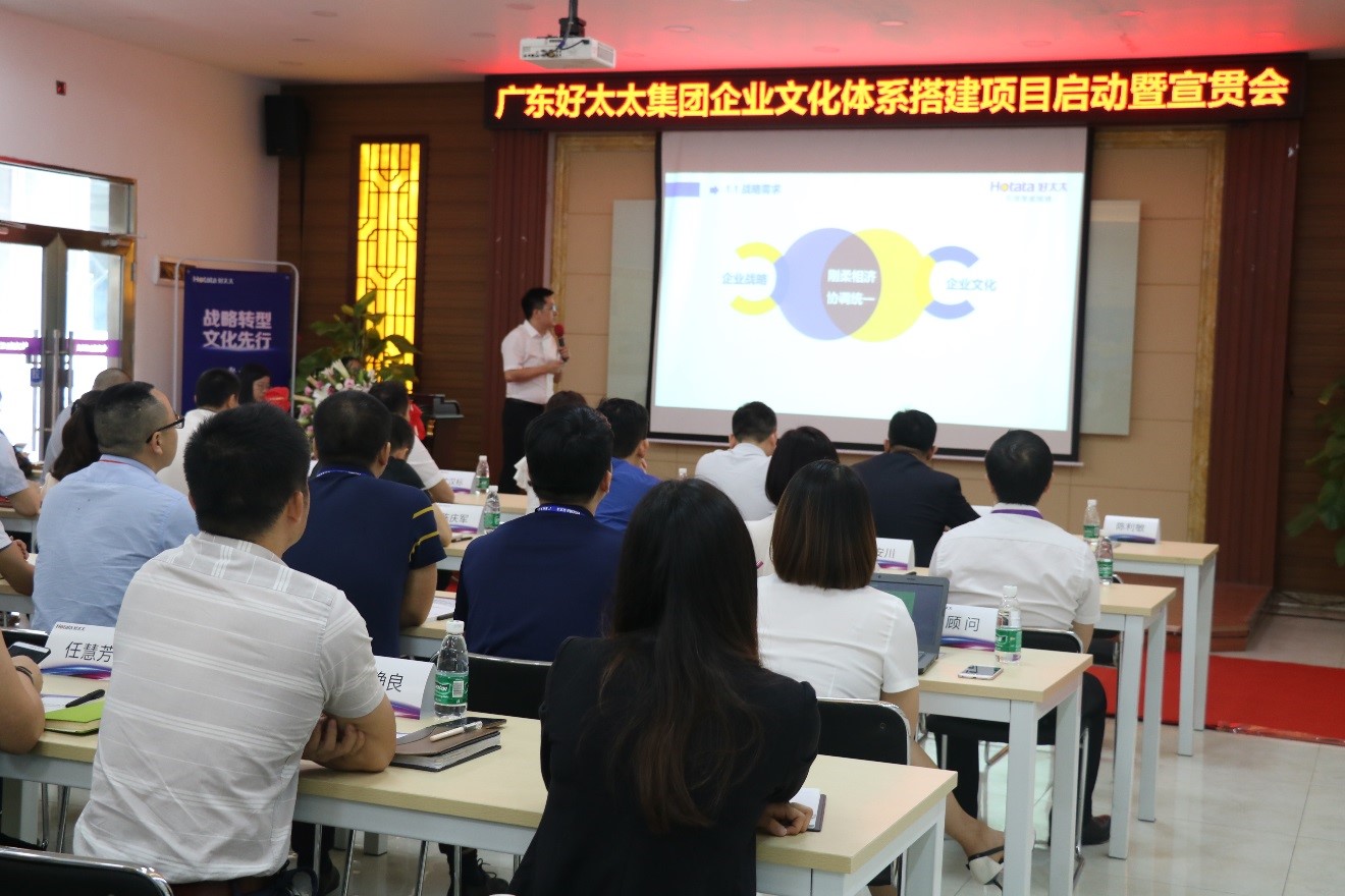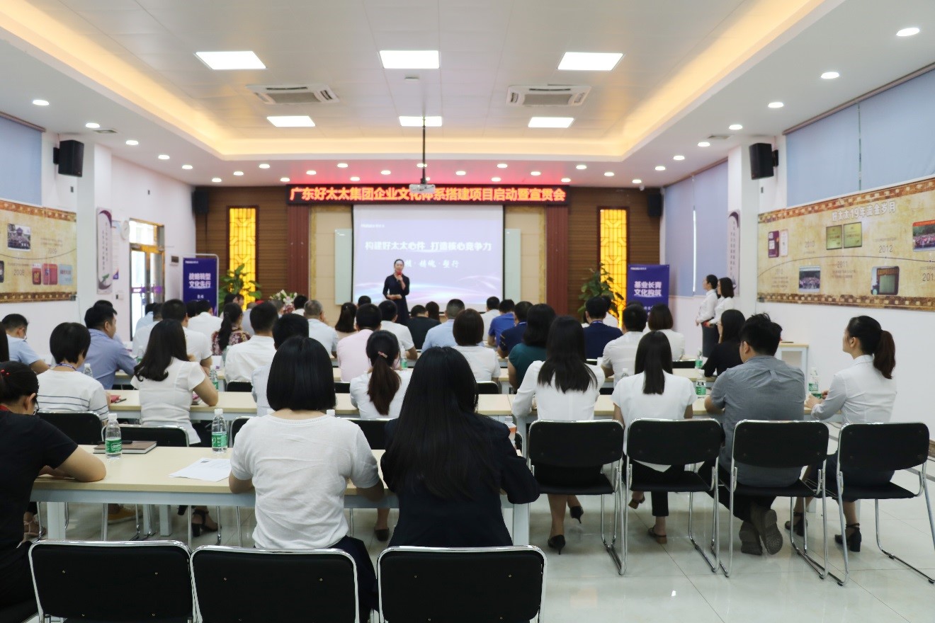 5月28日对于好太太来说是个特殊的日子,下午两点由商学院主办的企业文化体系搭建项目启动会在好太太培训室成功举行。本次活动出席的嘉宾有集团董事长沈汉标、集团总裁兼商学院院长王妙玉、集团副总经理侯总、集团营销总经理陈总、中大咨询企业文化事业部总监蔡占明等。本次启动会不仅希望大家对企业文化的价值和意义以及整体建设全过程有基本的认知和理解,对整个项目保持思想统一,高度重视;更希望在未来的体系搭建项目开展过程中,各部门能够积极配合、全力支持,通过明确目标,各部门共同推动项目的顺利完成,并激发大家的热情及内心的责任感与使命感。