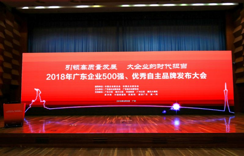 近日,由广东省企业联合会、广东省企业家协会主办的“2018年广东企业500强、优秀自主品牌发布大会”在广州举行。本届大会以“引领高质量发展,大企业的时代担当”为主题。