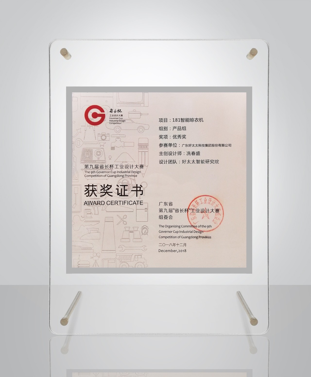由广东省人民政府工业和信息化厅主办,广东省工业设计协会承办的第九届“省长杯”工业设计大赛经过约4个月的赛程已经结束。本届“省长杯”在全省21个地市,15个分赛区充分发动,从破纪录的32051件参赛作品中,选出513件决赛作品,并最终决出30件获奖作品和30个单项奖。其中,好太太智尊系列GW-181凭借创新的产品工业设计脱颖而出,荣获“省长杯”工业设计大赛奖。