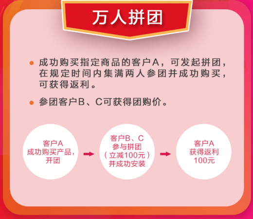 2、参团客户B、C可获得团购价。(该活动不可与其他活动共享)