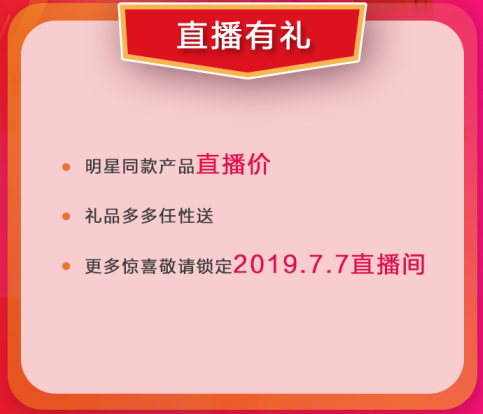 通过线上直播系统,客户可自由选择在线上微商城或线下门店下单,均可享受直播价,礼品多多狂欢送。更多惊喜敬请锁定2019年7月7日直播间