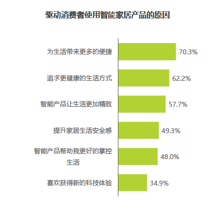 在智能锁领域的消费者满意度这个维度来看,海尔、好太太、萤石等品牌表现良好。同时,以小米、海尔、好太太为代表等国产品牌,未来购买意愿均在10%以上。根据白皮书报告数据,超过50%的被访者选择追求更健康,更精致的生活方式,是驱动智能家居产品的重要原因。而对“追求健康、智能生活理念”高度关注的好太太和大众的智能家居消费观不谋而合。”