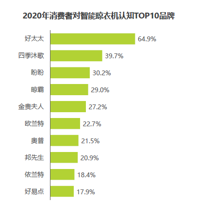 直播当晚,权威调研机构艾瑞发布《智领生活》智能家居用户洞察报告,用大数据解读当代人的智能家居消费观。数据报告表示,好太太的智能晾晒早已“出圈”,超过6成消费者知道好太太品牌,其认知度比第二名高出25.2%,同时有超过60%的消费者计划在未来半年购买好太太晾衣机,远远领先于行业第二。