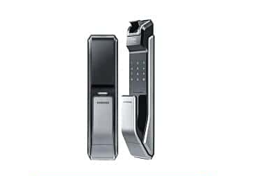 我们的下一个选择。三星的 SHS-P718-LMK 智能锁锁与我们列表中的其他智能锁不同。这款三星智能锁不依赖于转动把手,而是推/拉概念。