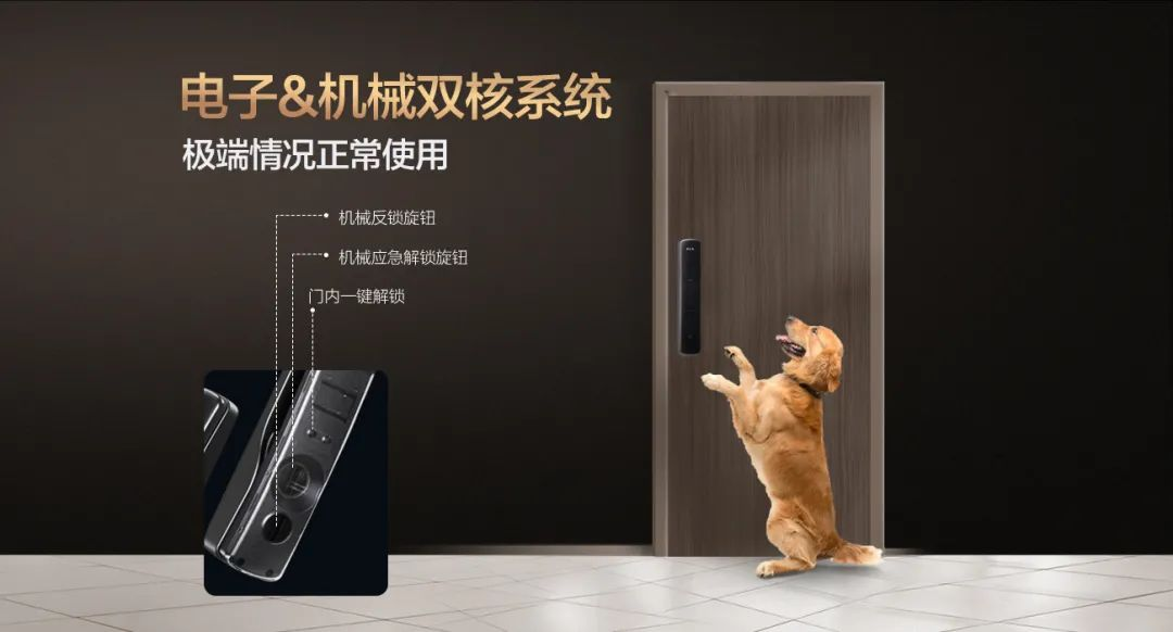 机械系统遇到水灾火灾等极端情况仍能正常使用,任一系统失效,另一系统仍能正常开关锁