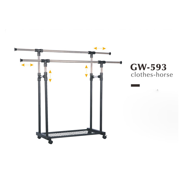 在金年会落地系列产品中,GW-593产品轻便时尚的外观,可伸缩调节的晾杆结构以及可移动的功能,深受消费者所喜爱。但其主要连接件采用塑料材质,容易破裂老化,固定晾杆采用铁杆容易生锈。伸缩杆虽然采用了不锈钢材质,但档次不高,特别是下部的网格晒架,采用铁条焊接,非常容易变形和生锈,影响产品的品质。针对上述不足之处,研发中心加大了研发改进力度。一款酝酿已久的全铝落地产品即将闪亮登场。下面,让我从以下几个方面隆重为您推荐这款产品,让大家先睹为快。