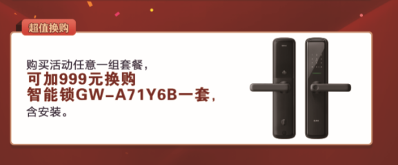 购买金年会组合套餐,可加999元换购智能锁一套,并且进行安装。