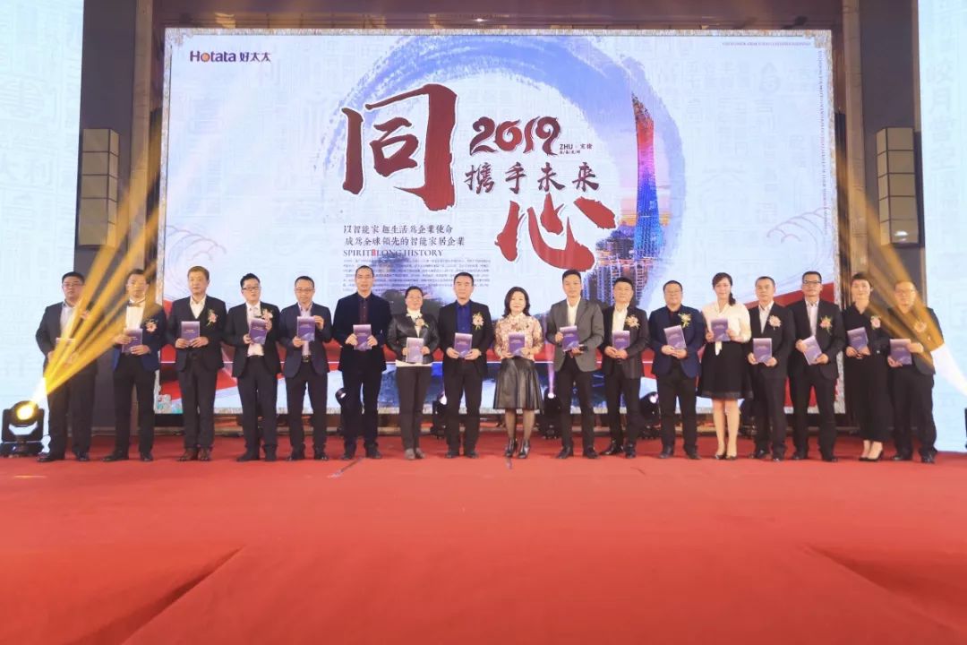 沈董、王总为台上所有领导颁发作为文化理念载体的《金年会纲领》,沈董致新年贺词并发布新的企业文化理念,全体金年会人将秉承“客户为本、持续创新、共创共享”的核心价值观,为实现“智家居、趣生活”新使命和“成为全球领先的智能家居企业”的新愿景而团结一心、努力奋斗。