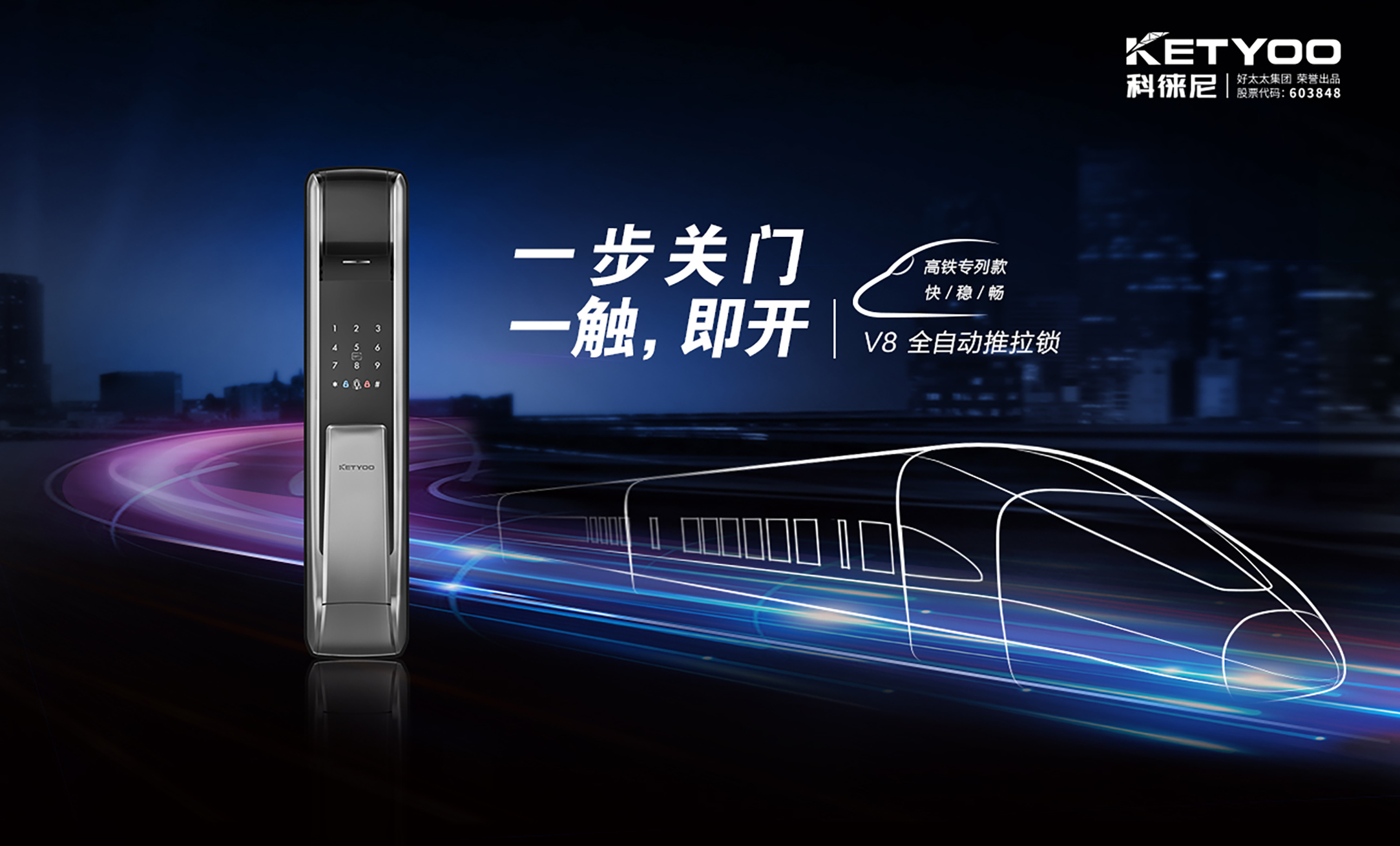 中国的高铁让人们出行更便捷,智能的开门方式让生活更舒适安全。科徕尼打造高铁专列版——科徕尼AI智能锁V8,集和谐号精华研发之作,一步关门,一触,即开。
