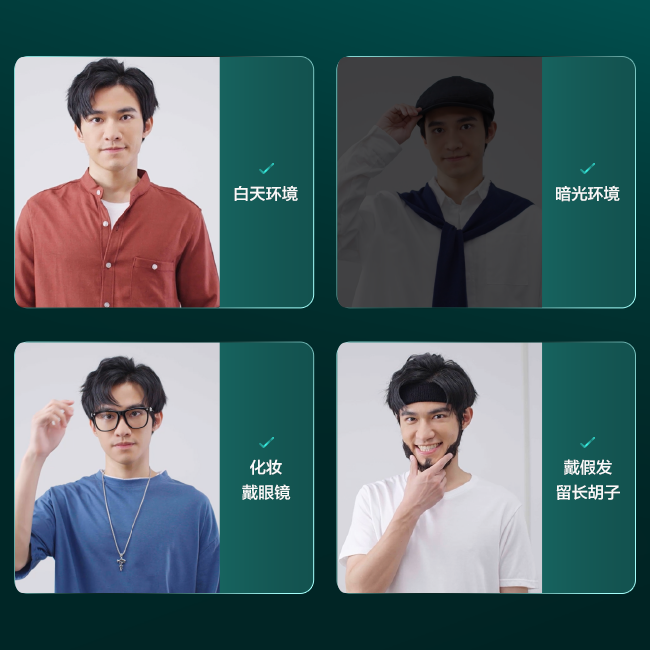 戴眼镜、假发、化妆等都不受干扰,精准识别