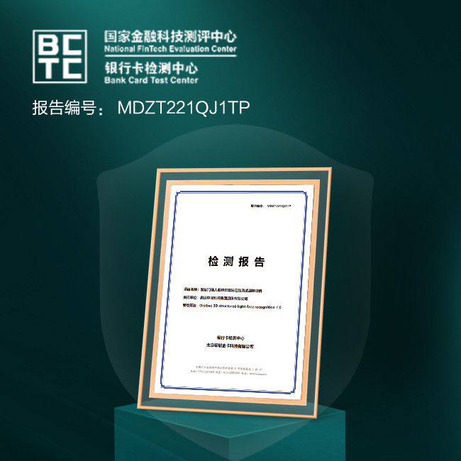 3D人脸模组通过银行卡检测中心(BCTC)认证,安全级别比普通金融支付级别系数高,精准又安全